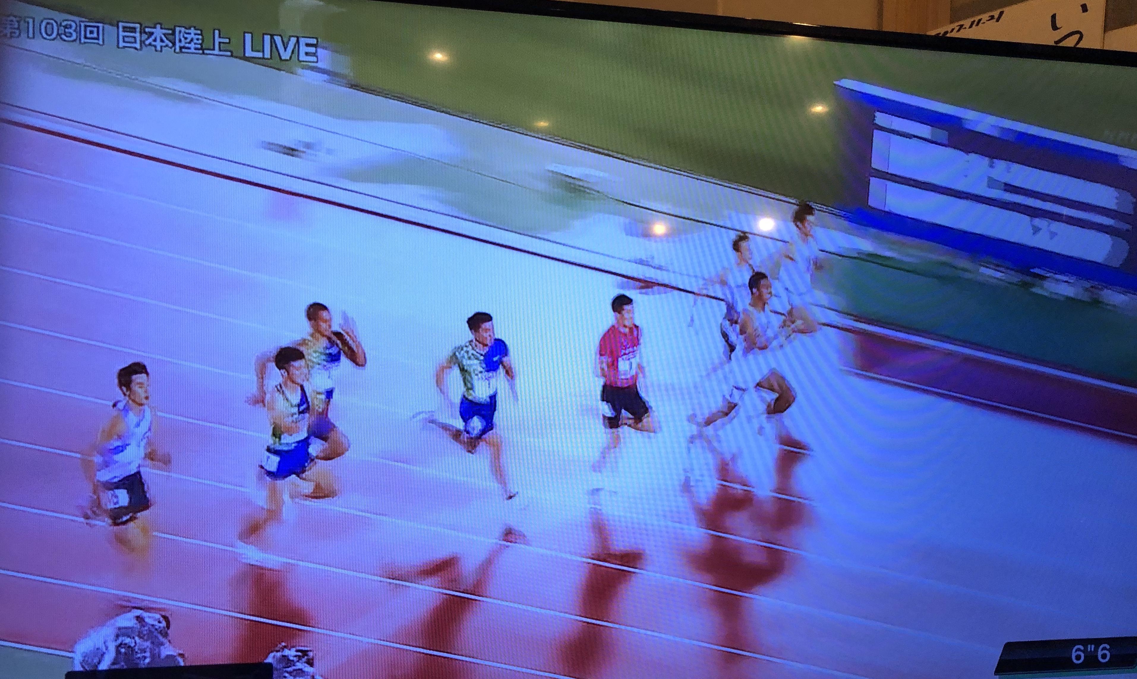 また夜には、日本中が注目した陸上日本選手権100m決勝がNHKで生中継されていました。