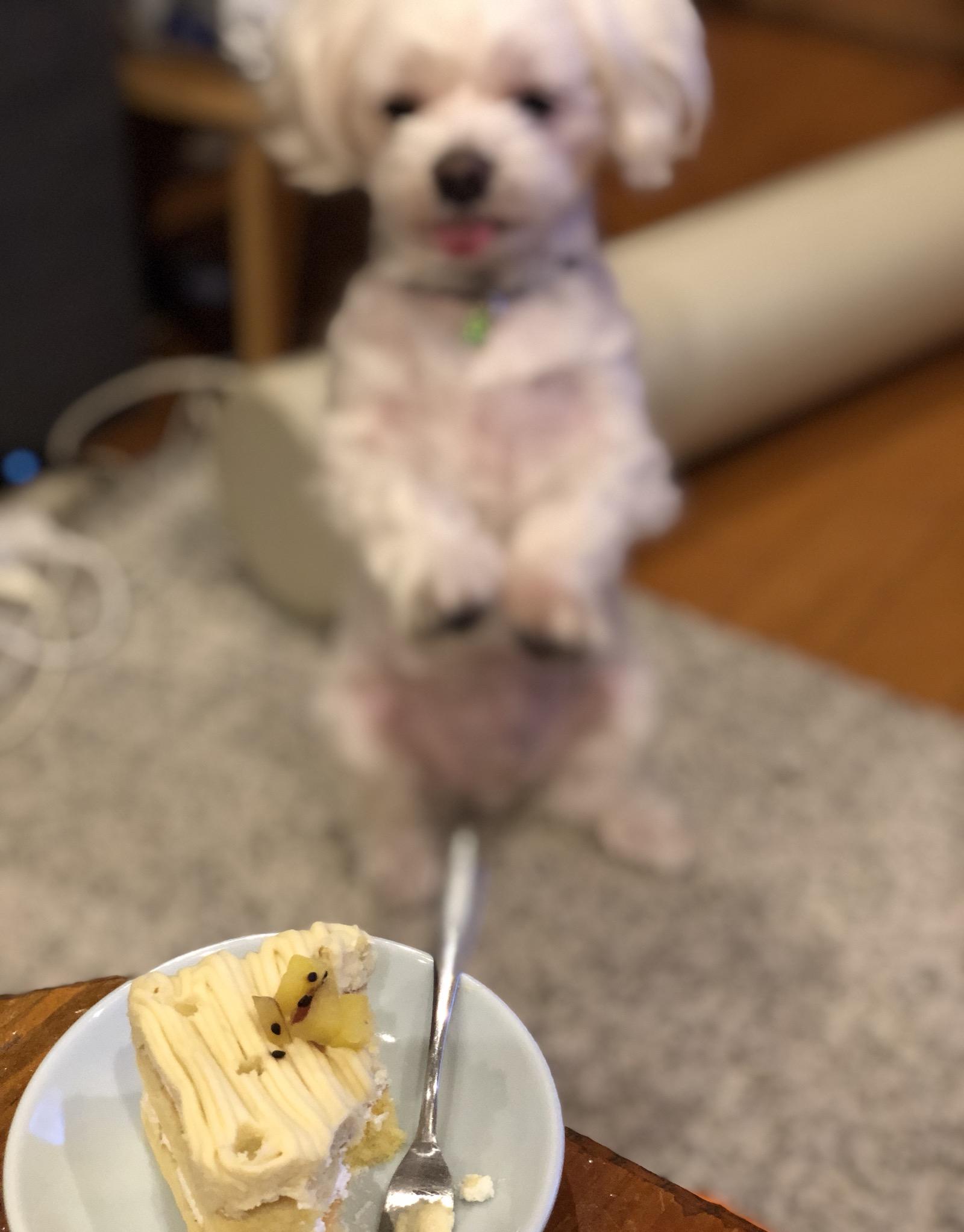 ポートレート機能で撮ったら、ケーキにピントが合ってしまい、ゴン太がボヤけてしまった。。